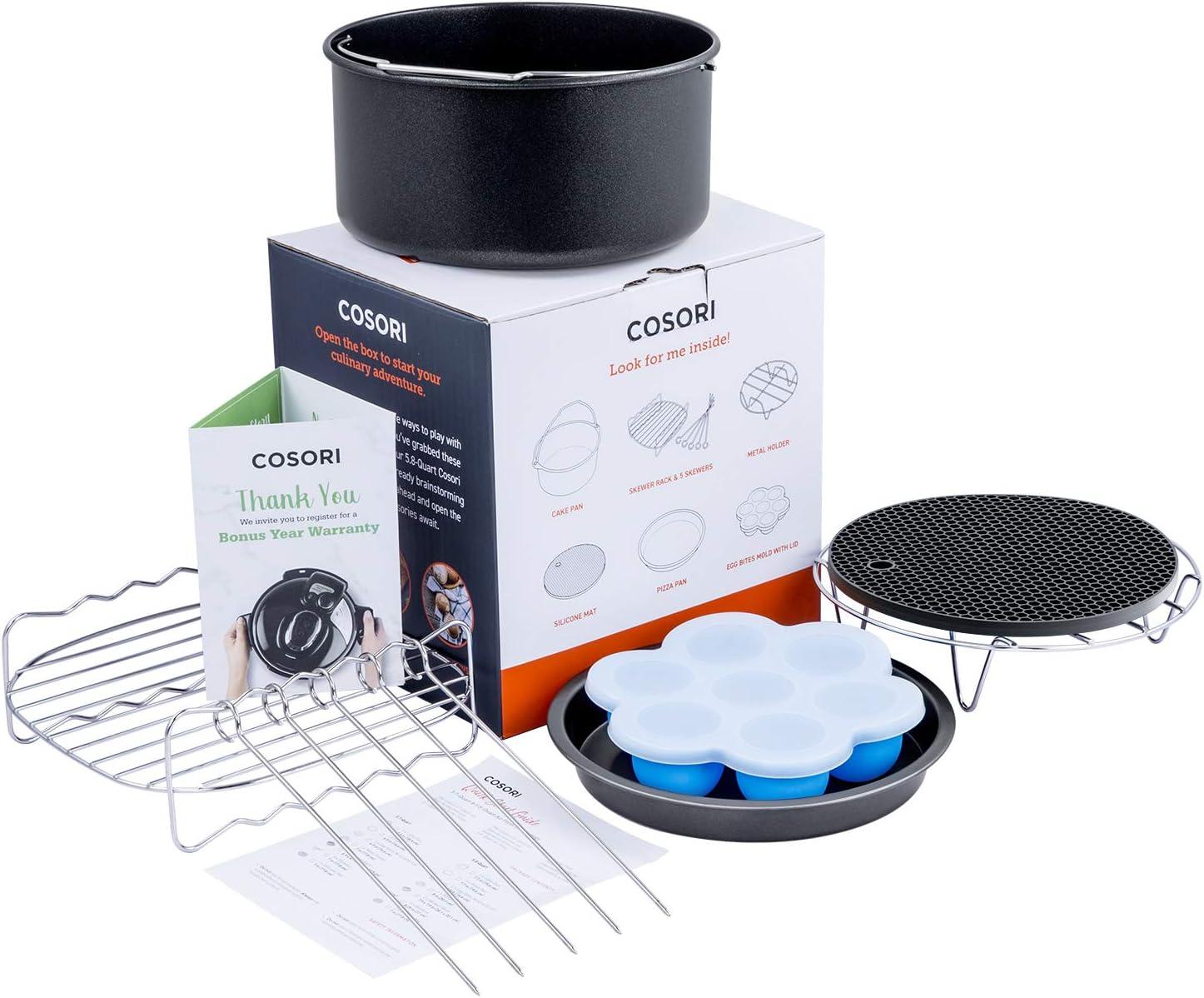 COSORI Air Fryer Accessories, Set of 6 for Most 3.7Qt and Larger Oven Cake&Pizza Pan, Skewer Rack, Nonstick, Dishwasher Safe Black(Black)