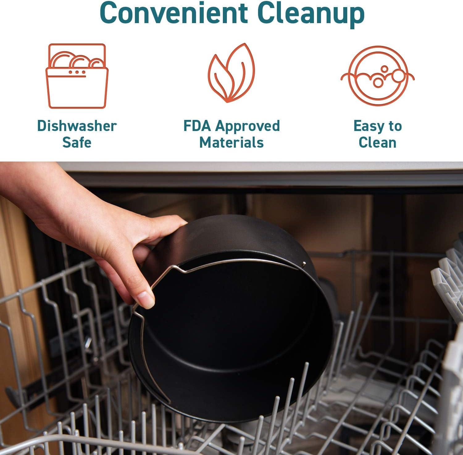 Dishwasher safe – All of our accessories are dishwasher safe. Nonstick coating pans, metal rack and heat-resistant mat & mold, which are durable and easy to clean