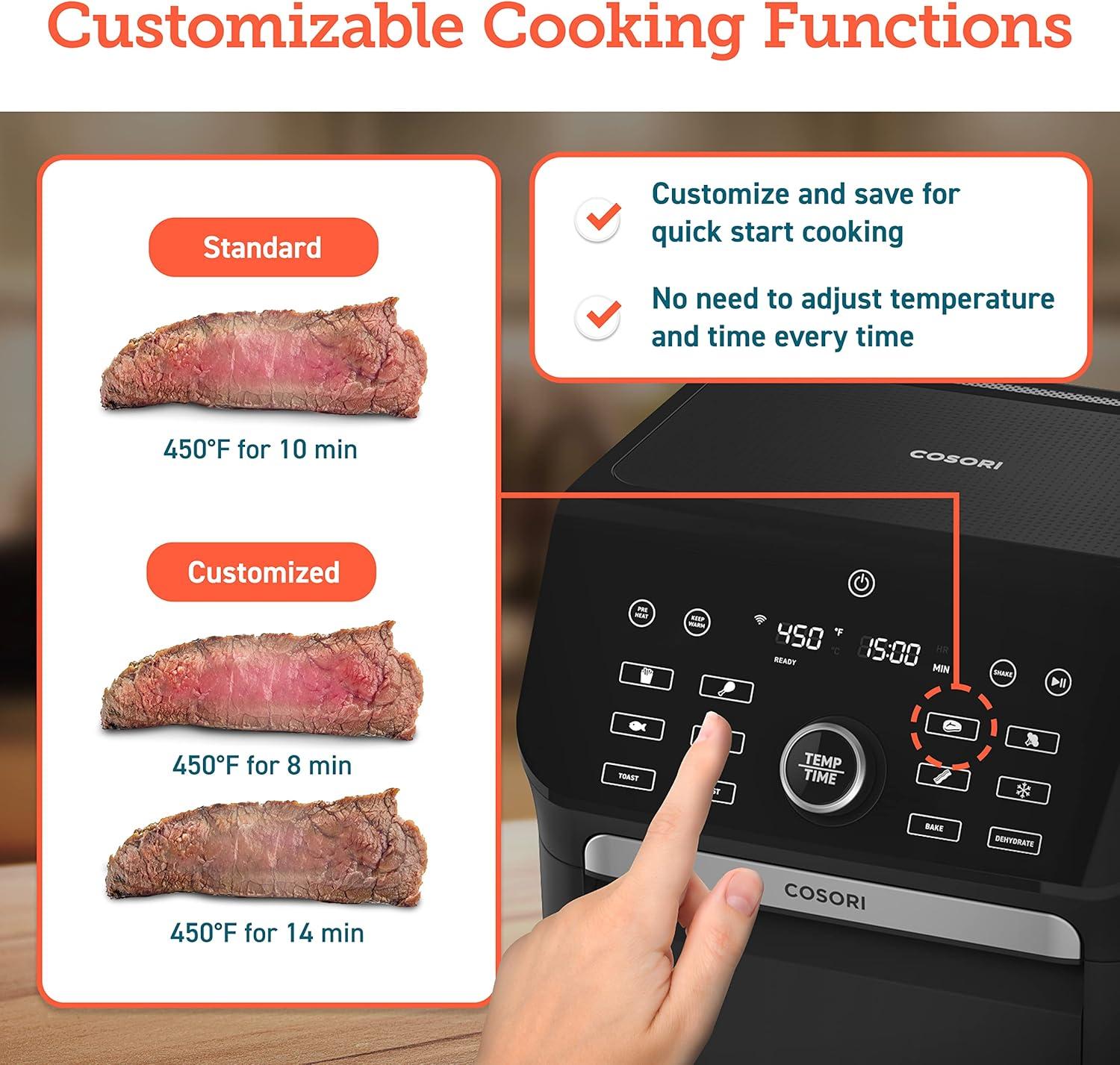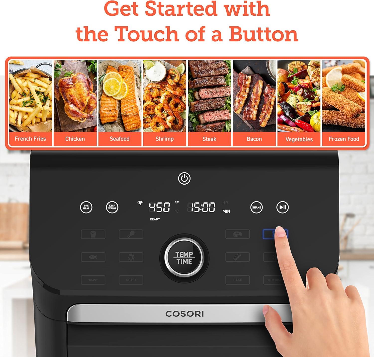 FREE APP WITH 1000+ RECIPES: Enjoy over 1,000 recipes made by COSORI chefs on the VeSync app. Step-by-step instructions, cook time, and temperature let you cook delicious meals without the guesswork