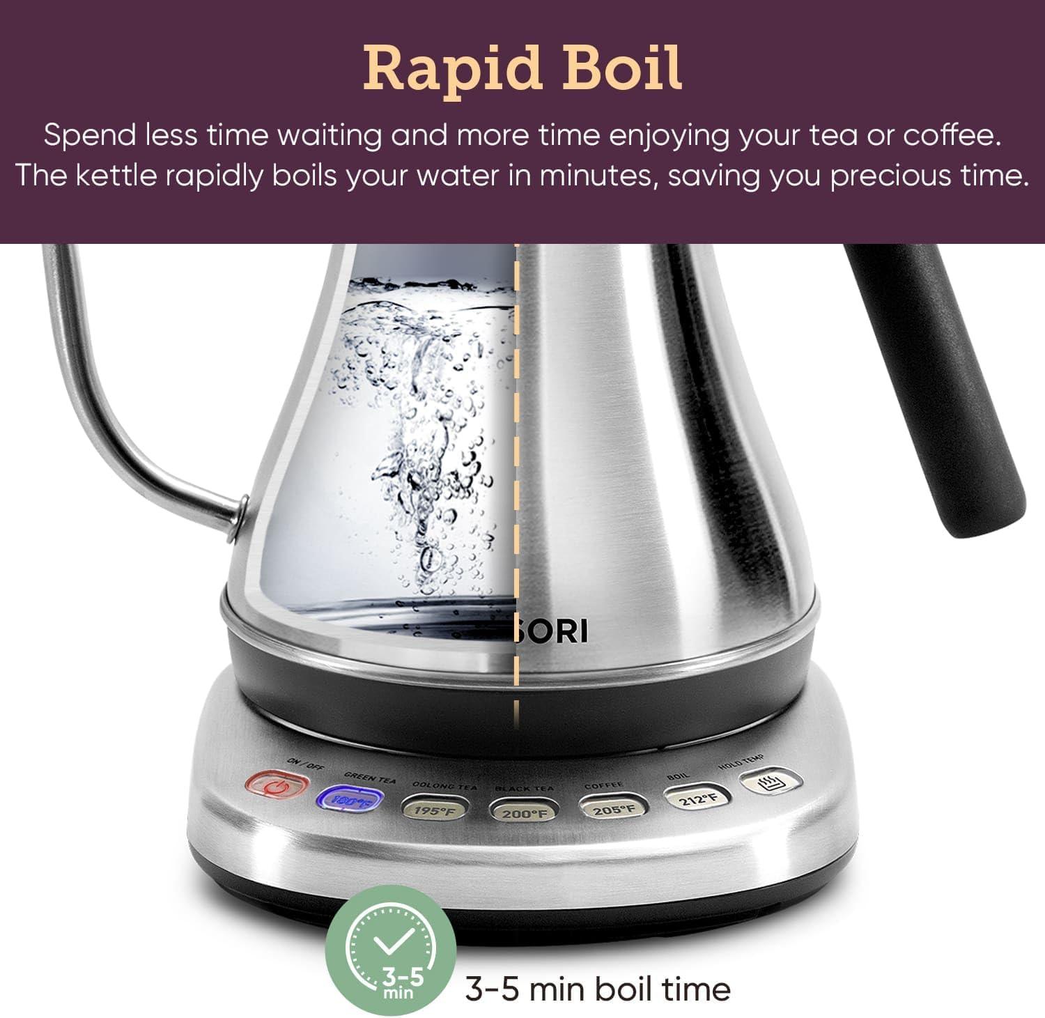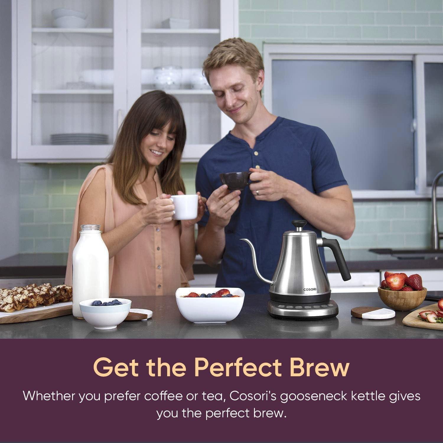 COSORI Electric Gooseneck Kettle with 5 Temperature Control Presets, Pour Over Kettle for Coffee & Tea, Hot Water Boiler, 100% Stainless Steel Inner Lid & Bottom, 1200W/0.8L(Matte Black)