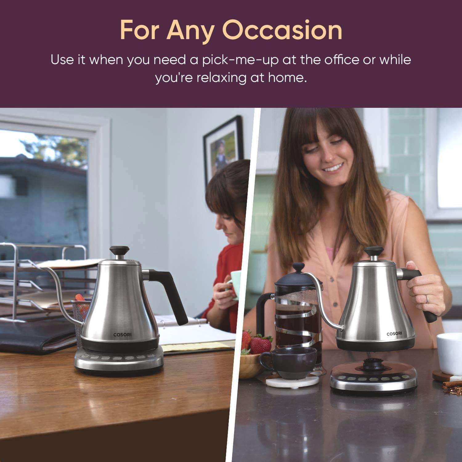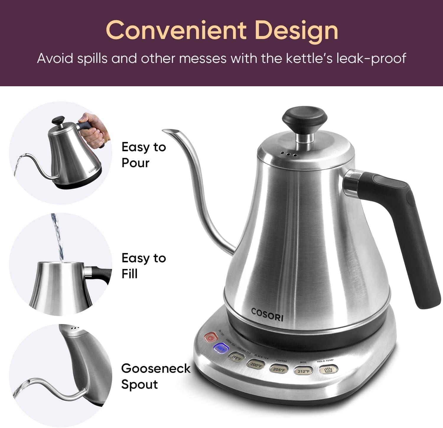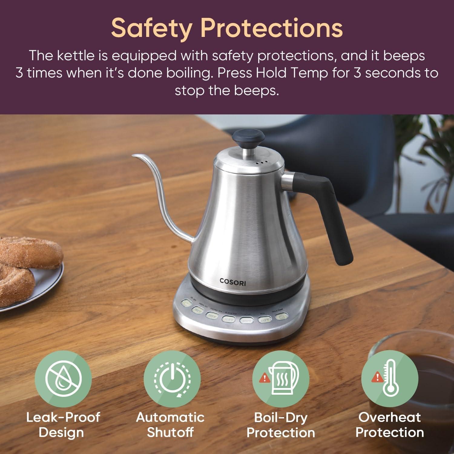 COSORI Electric Gooseneck Kettle with 5 Temperature Control Presets, Pour Over Kettle for Coffee & Tea, Hot Water Boiler, 100% Stainless Steel Inner Lid & Bottom, 1200W/0.8L(Silver)