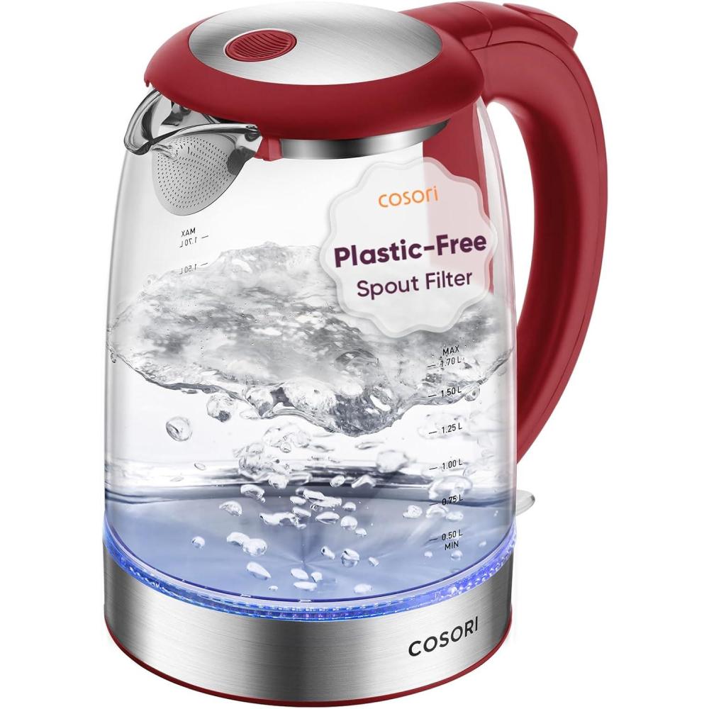 Plastic-Free Spout & Filter—— Glass spout and stainless steel filter prevent boiling water from touching plastic when pouring