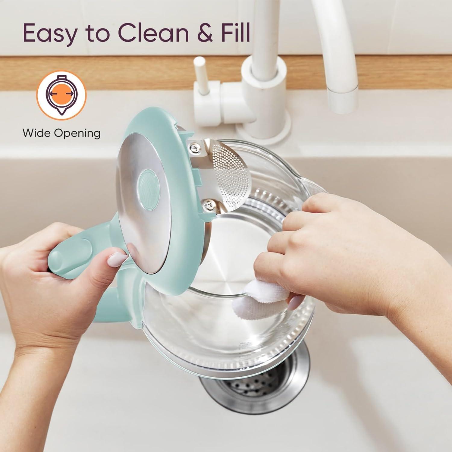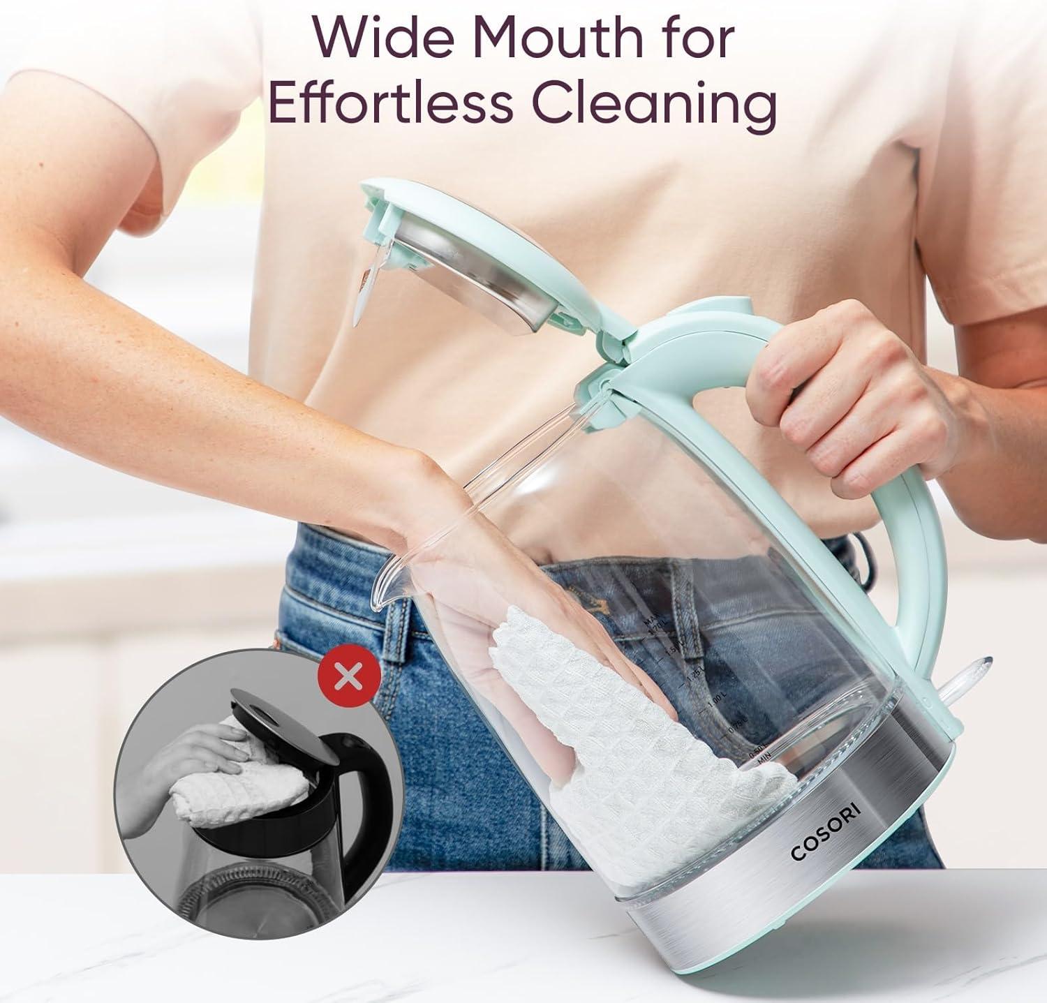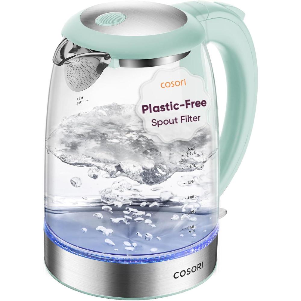 Cosori Electric Kettle, No Plastic Filter & Spout, 1.8Qt Tea Kettle & Hot Water Boiler For Coffee & Tea, Water Heater & Teapot, Automatic Shut Off, Borosilicate glass, Black, 1500W(Subtle Green)