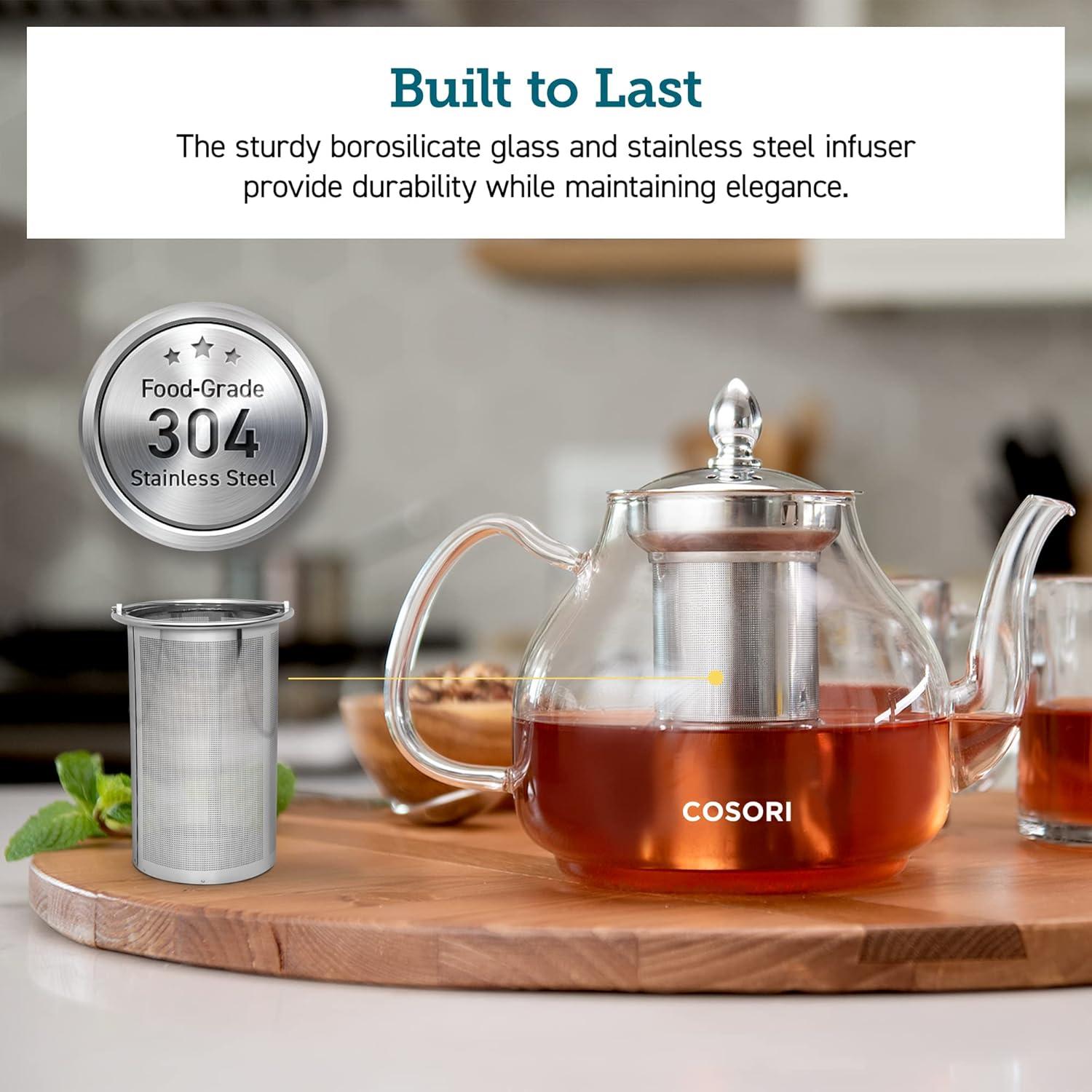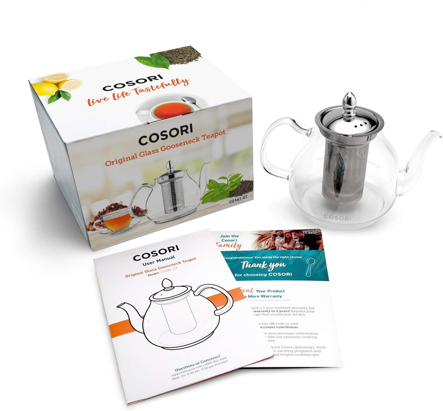 The Cosori is ideal for use with loose leaf teas or Teabloom flowering teas. The spout was designed for smooth pouring while preventing drips and leaks.
