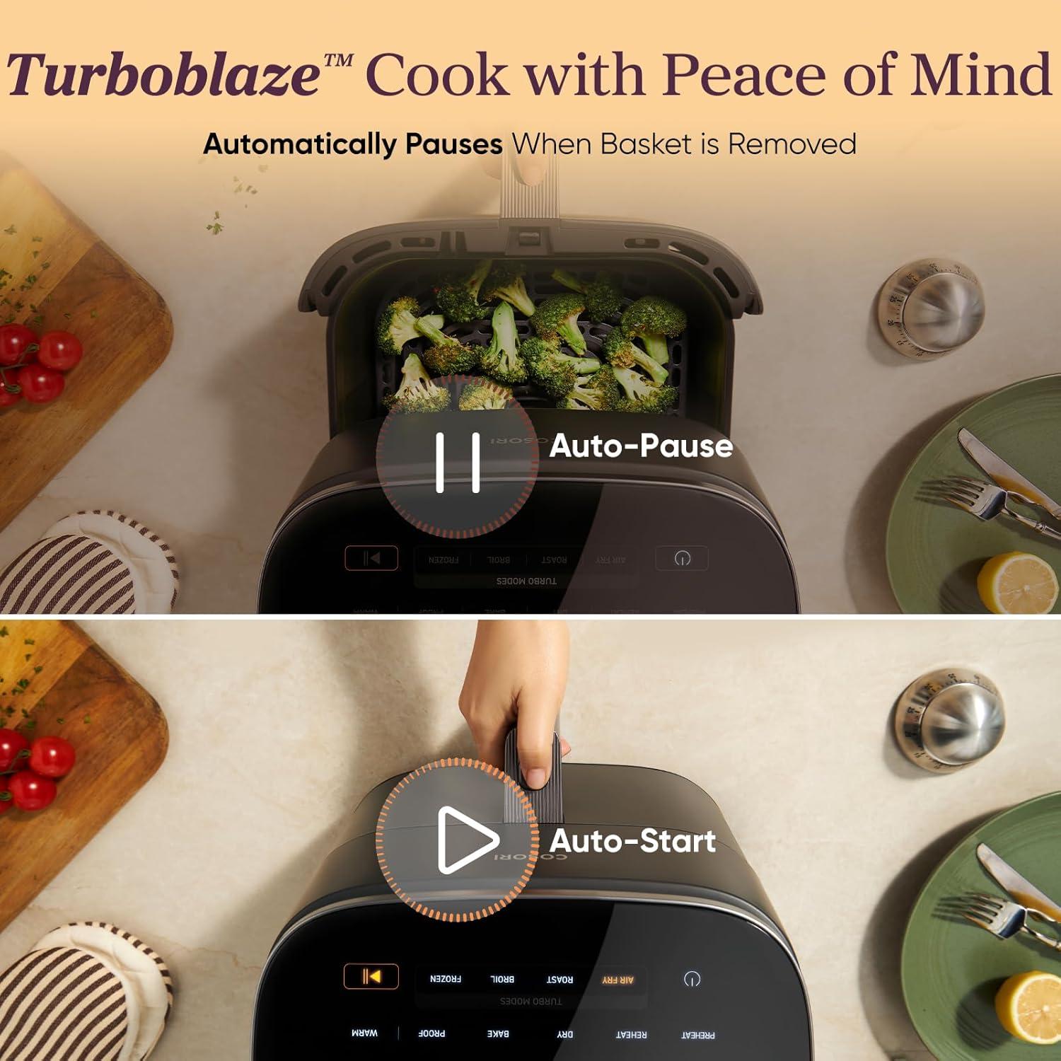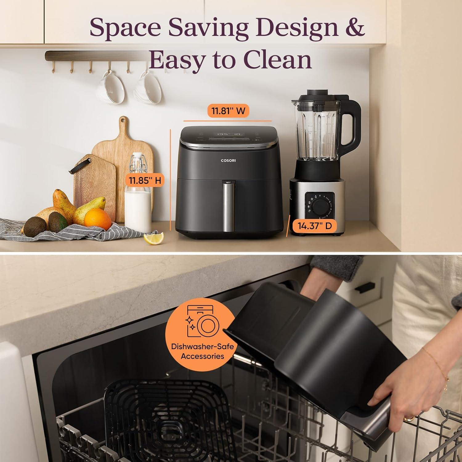 Cosori Iconic Stainless Steel 6.5 Qt Smart Air Fryer, PFAS-Free Ceramic Coating, Max 450ยฐF, Consistent Cooking, Air Fry, Roast, Bake, Dry, Proof, Reheat, Dishwasher-Safe Basket, Chef-Crafted Recipes(Dark Gray)
