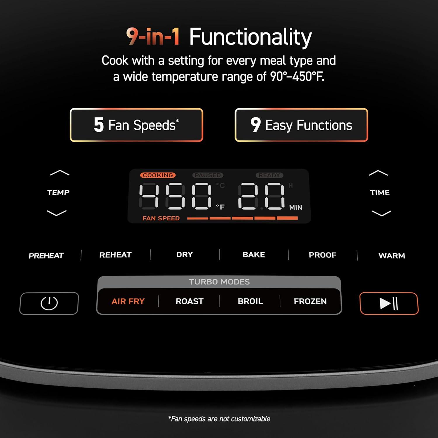 6 ๐˜พ๐™ค๐™ค๐™ ๐™ž๐™ฃ๐™œ ๐™๐™ช๐™ฃ๐™˜๐™ฉ๐™ž๐™ค๐™ฃ๐™จ: Refine your culinary skills with versatile functions,including Air Fry, Roast, Bake, Dry, Proof and Reheat